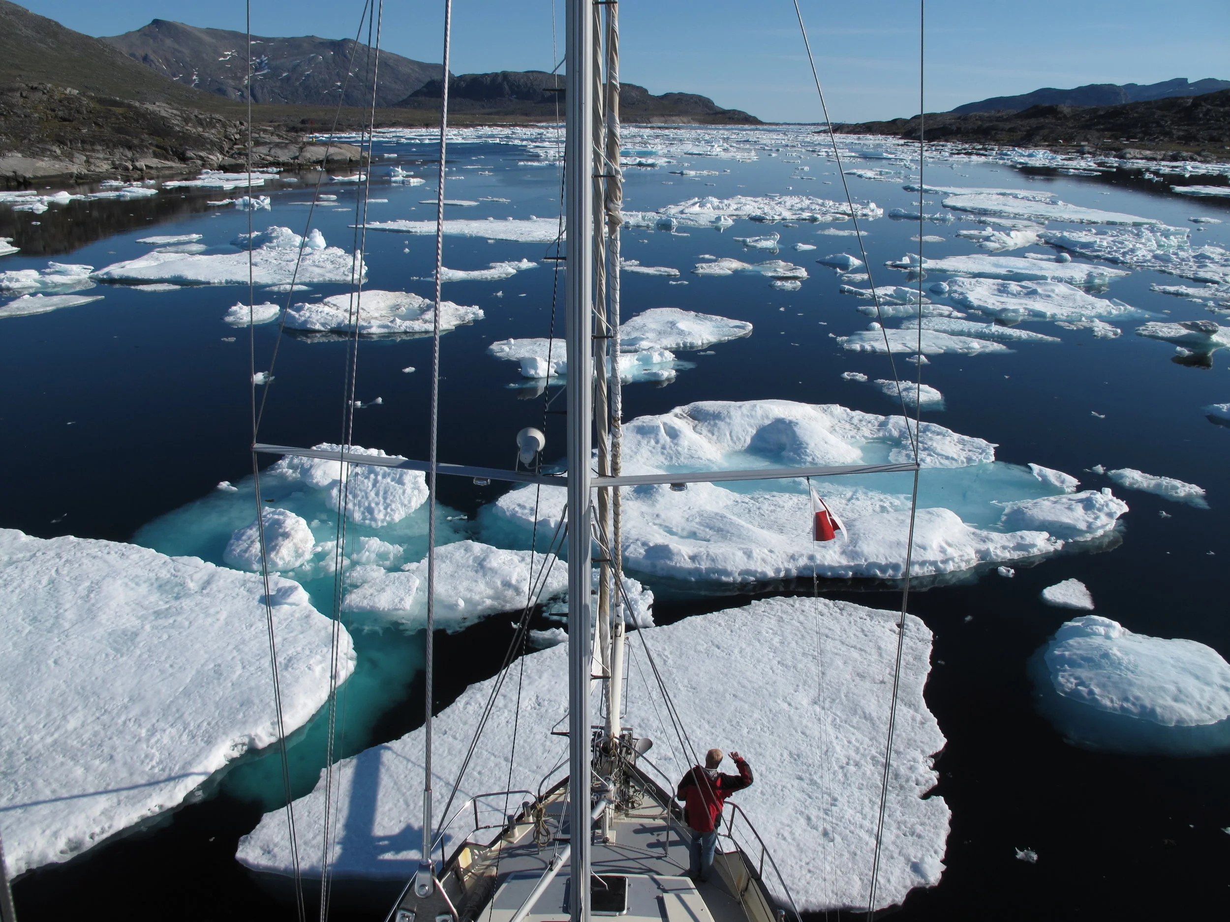 We start moving our way back north along the coast of Greenland but get tangled in a big icebelt.