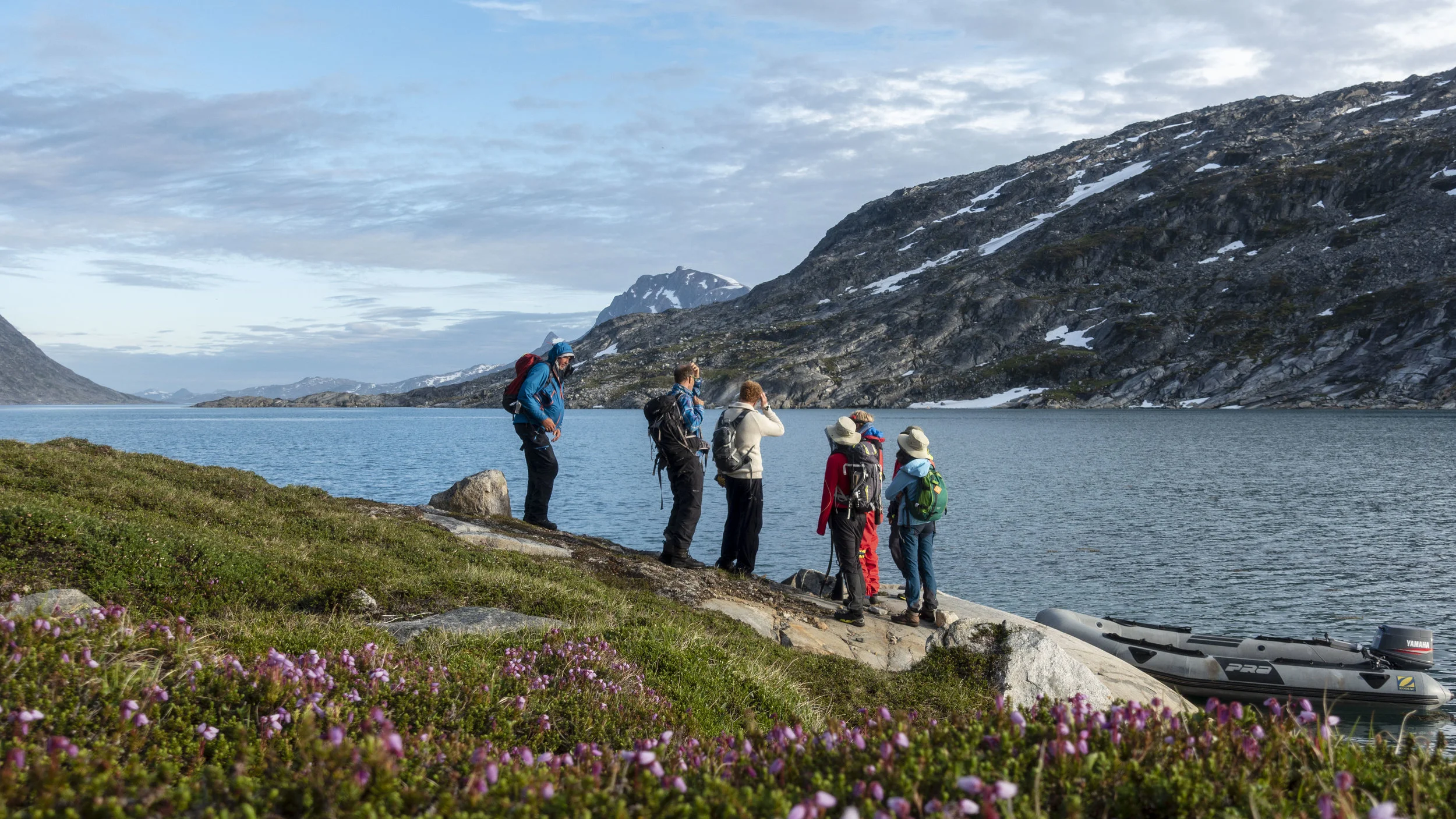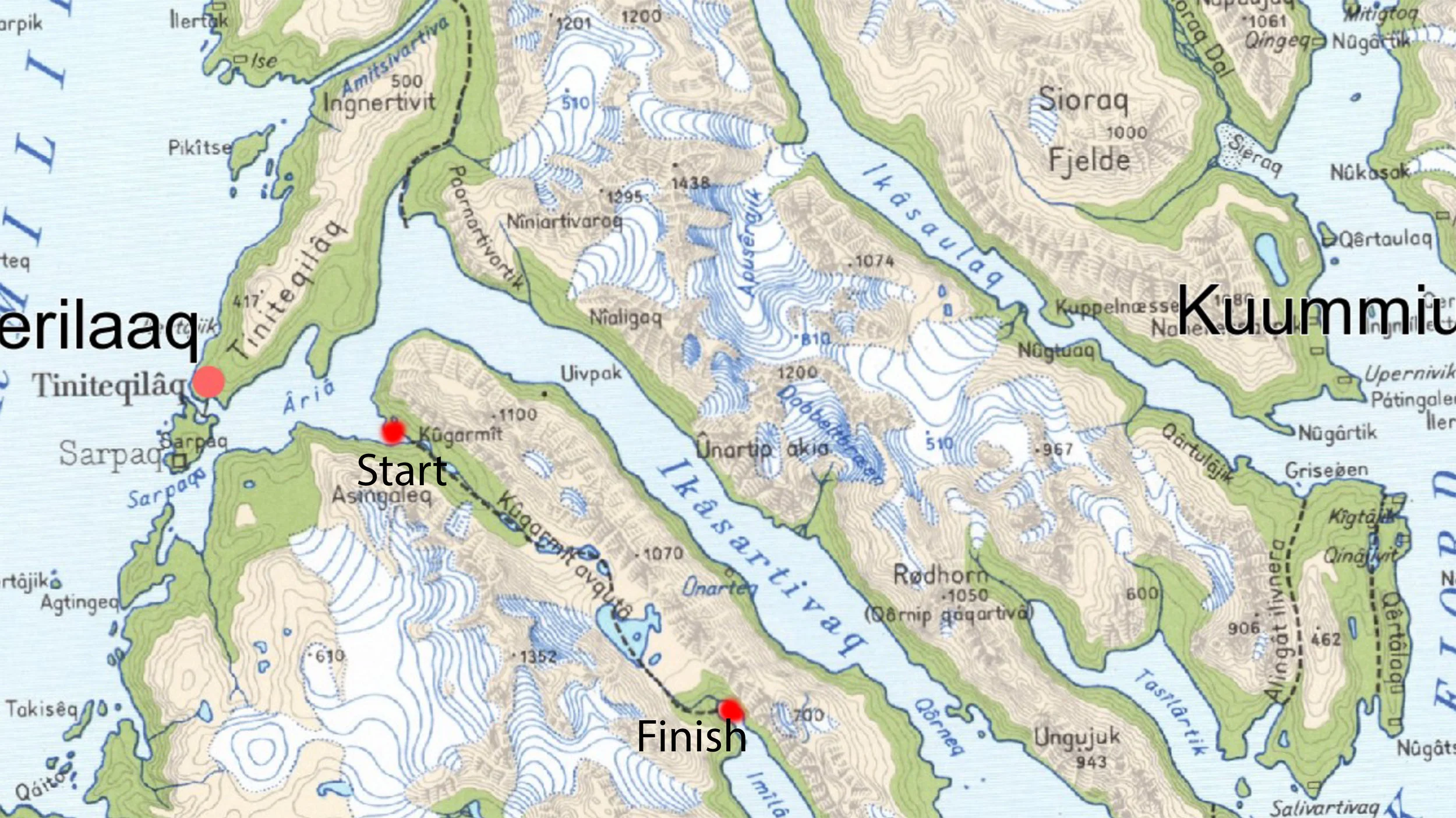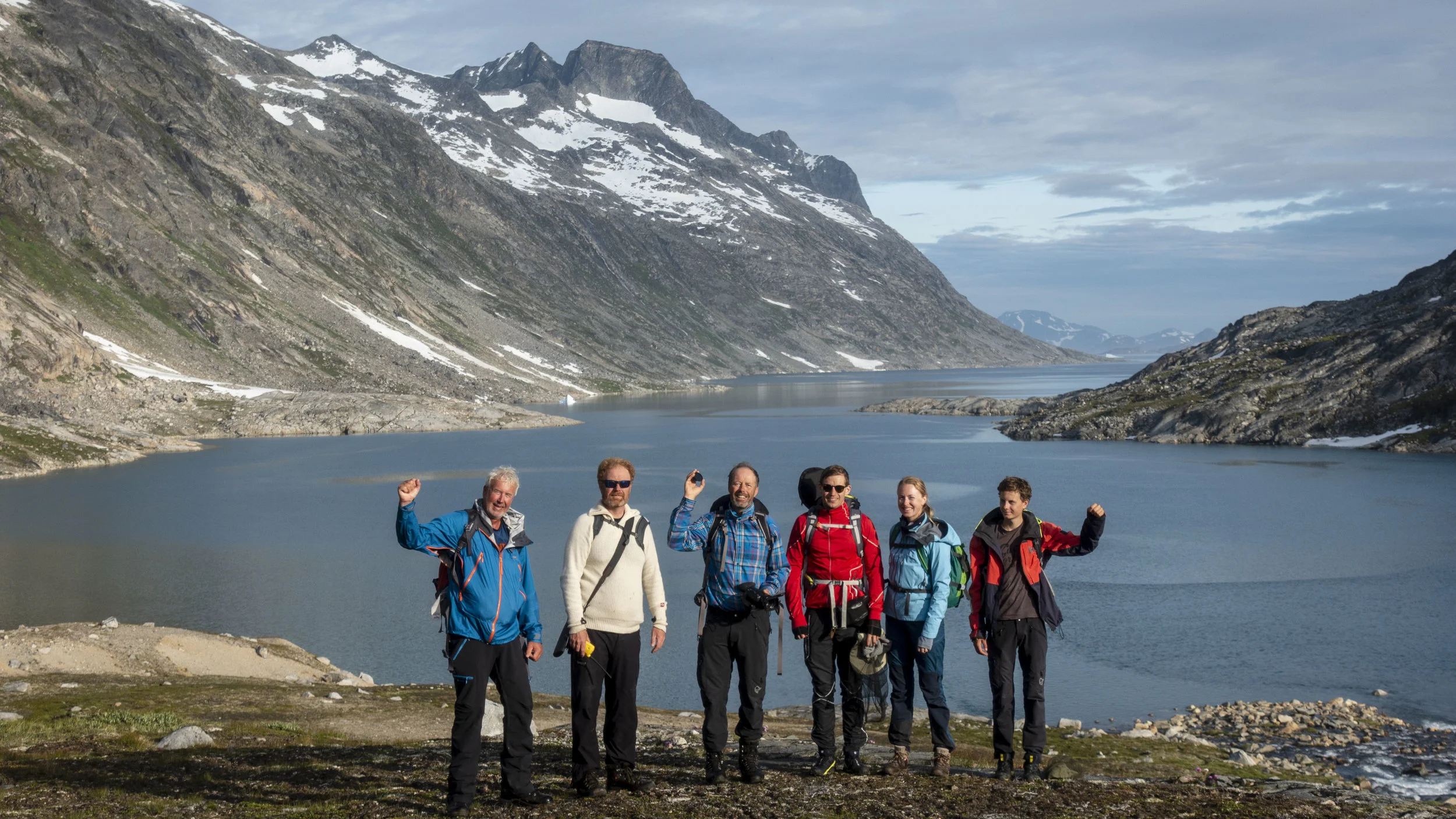 But finally, after two hours of drifting around the fjord, he got the call. They were successfully passed the lake and could see him down on the water. Stig, Per Morten, Bent, Catrine, Mari, Vegar and Marselius could cheer after nine hours, they had completed the hike between the two fjords. Now only an hour-long dinghy ride back out to Polar Sector, were dinner was ready for the tired hikers.